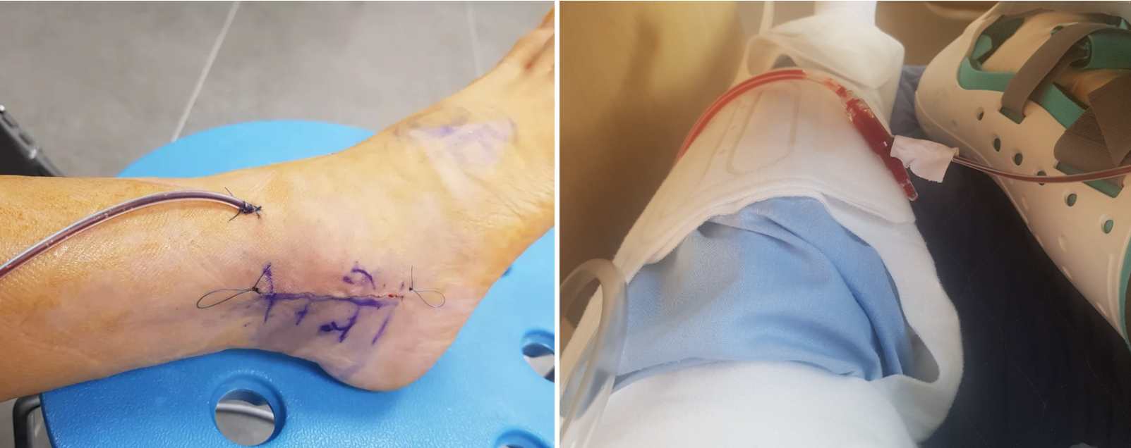 3. 수술한 다리를 높이 올리고 아이스팩으로 찜질하며 무통